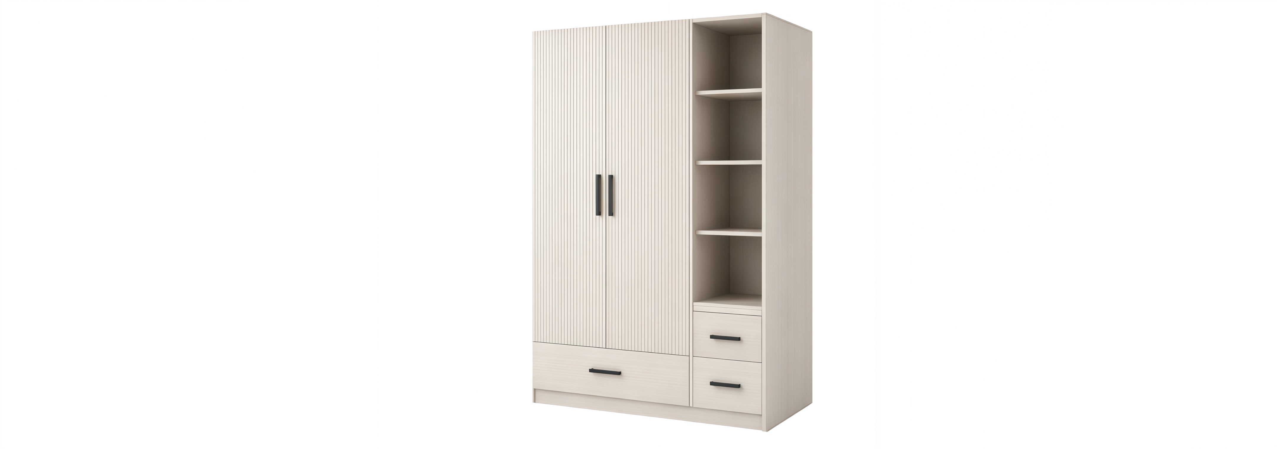 Cassettiera in mdf con sei cassetti e maniglie nere