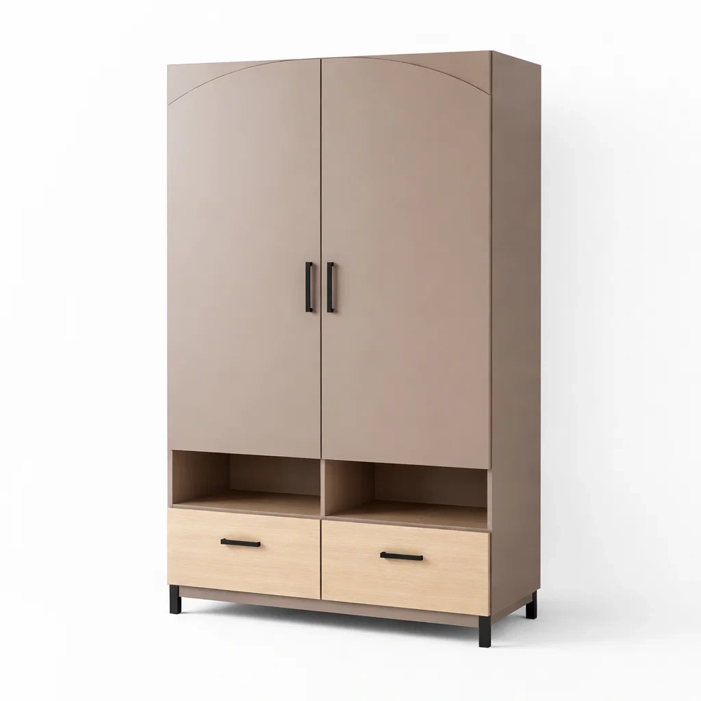 Armadio in legno con ante, ripiani e cassetti avorio 120x50x200 cm