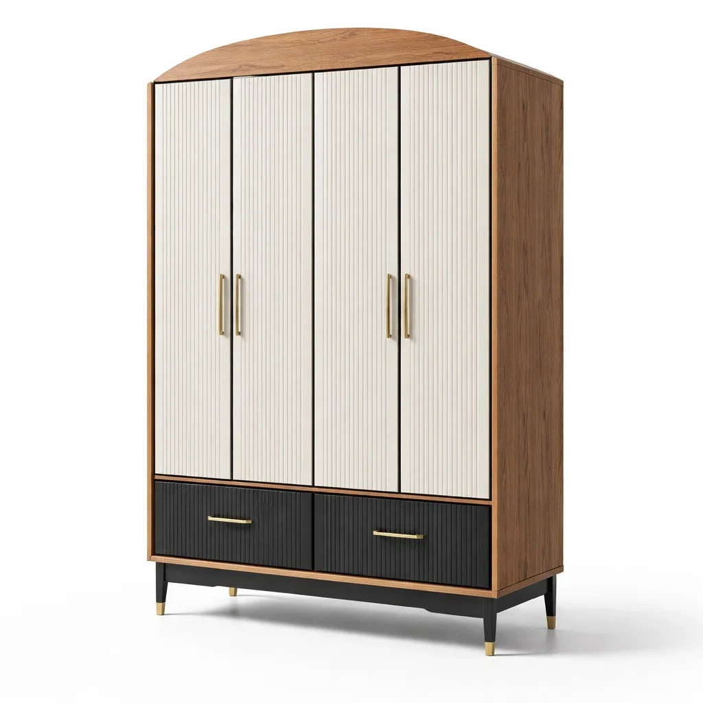 Armadio a quattro ante e tre cassetti in legno di quercia e mdf