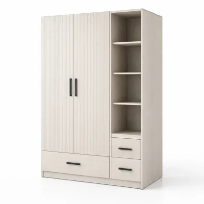 Armadio in legno con ante, ripiani e cassetti avorio 120x50x200 cm