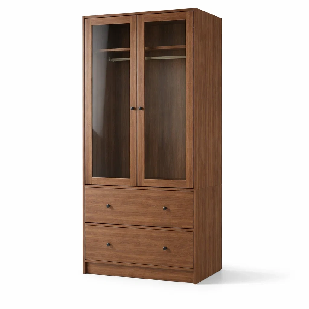 Armadio in mdf con struttura in legno e ante in vetro temperato